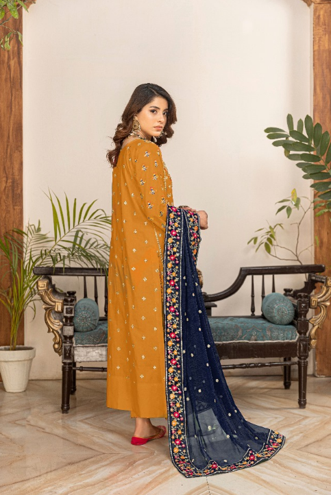 - Luxury Embroidered Pure Bamber Chiffon Dupatta