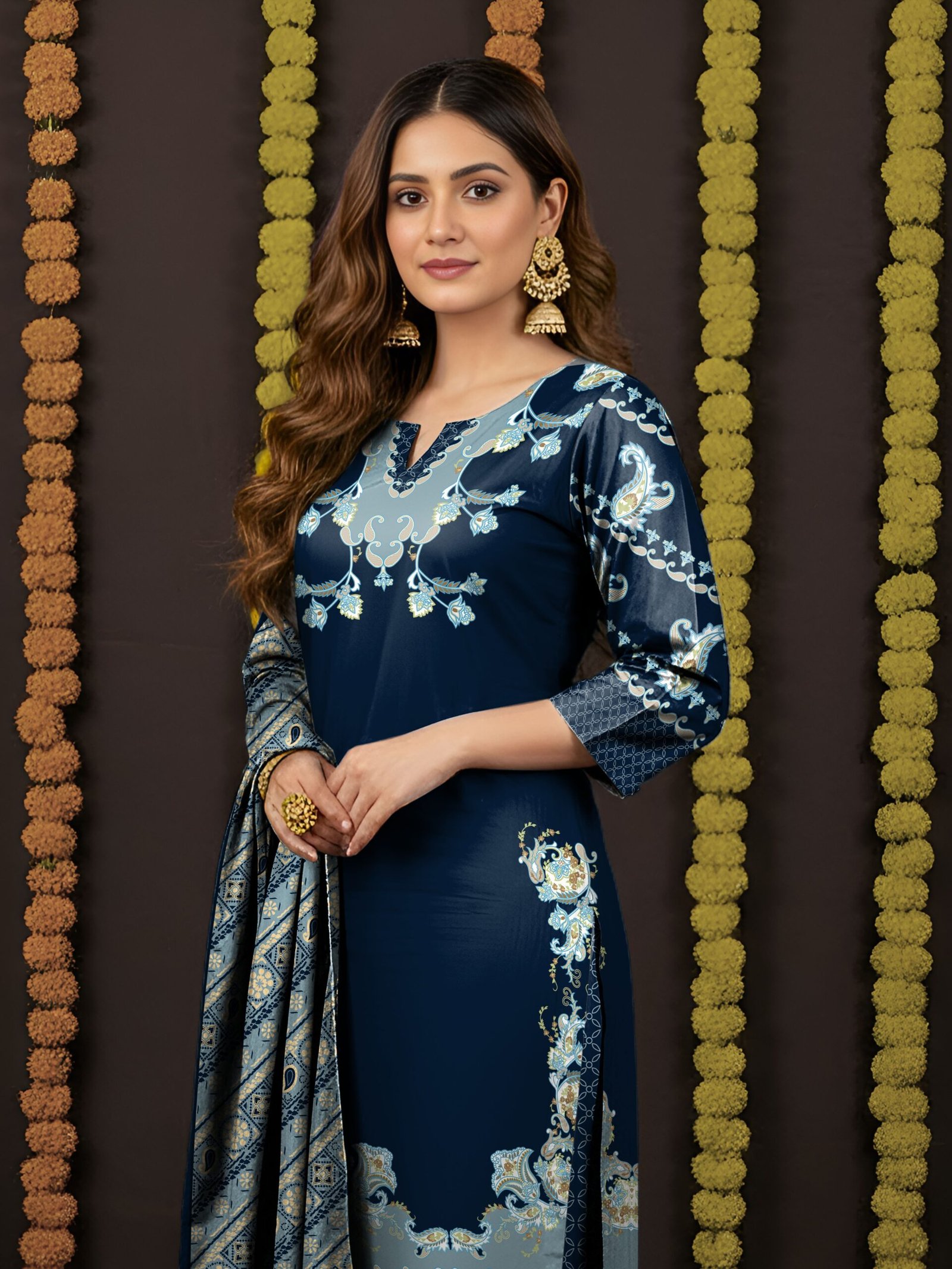 .Unstitched Printed Chiffon embroiderd Dupatta