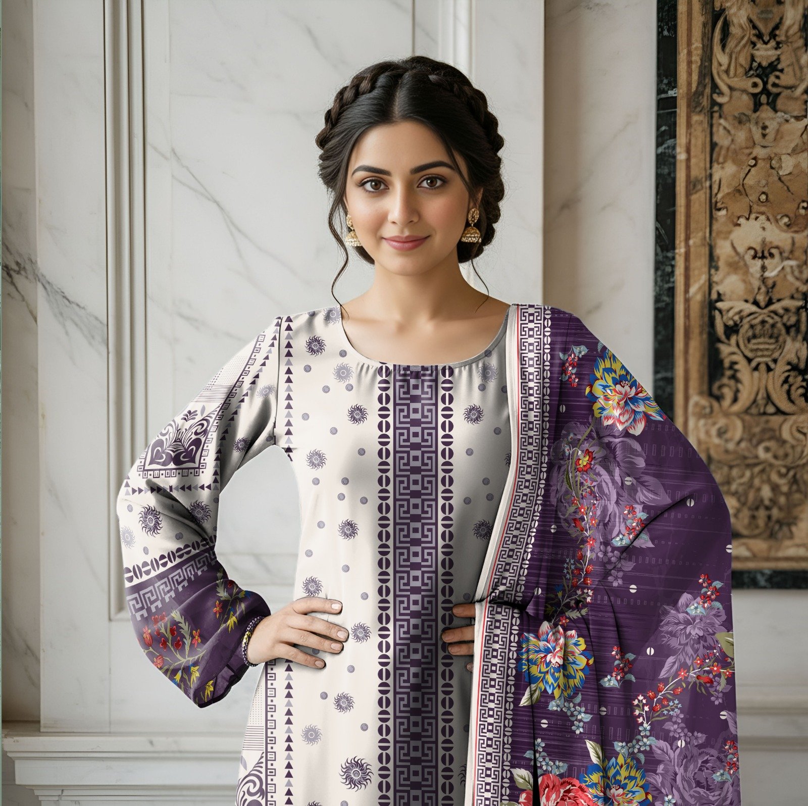 .Unstitched Printed Voil Dupatta